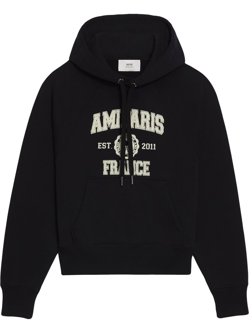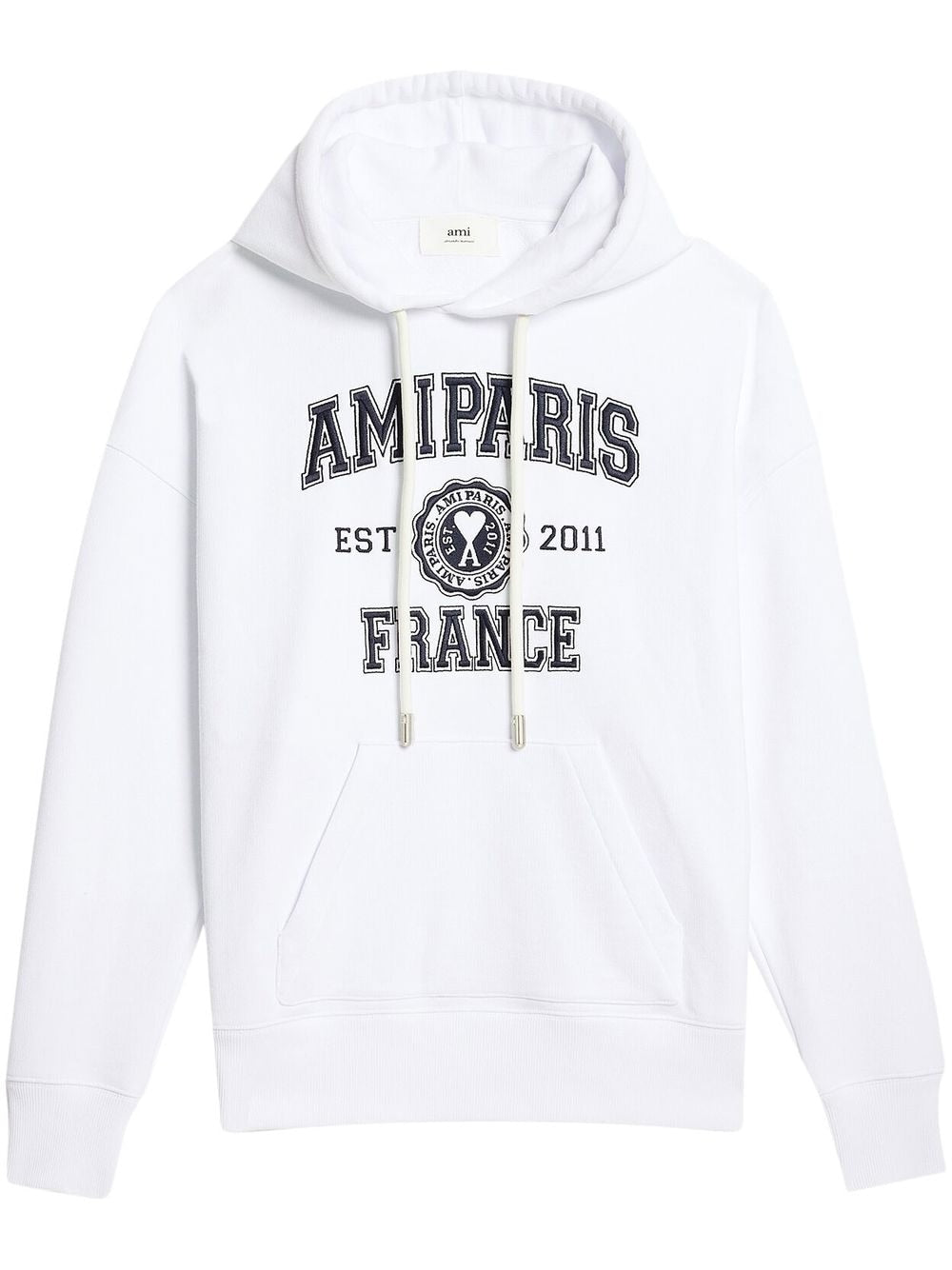 AMI Paris logo-print drawstring hoodie AMI Paris draws inspiration from classic collegiate styles to present...