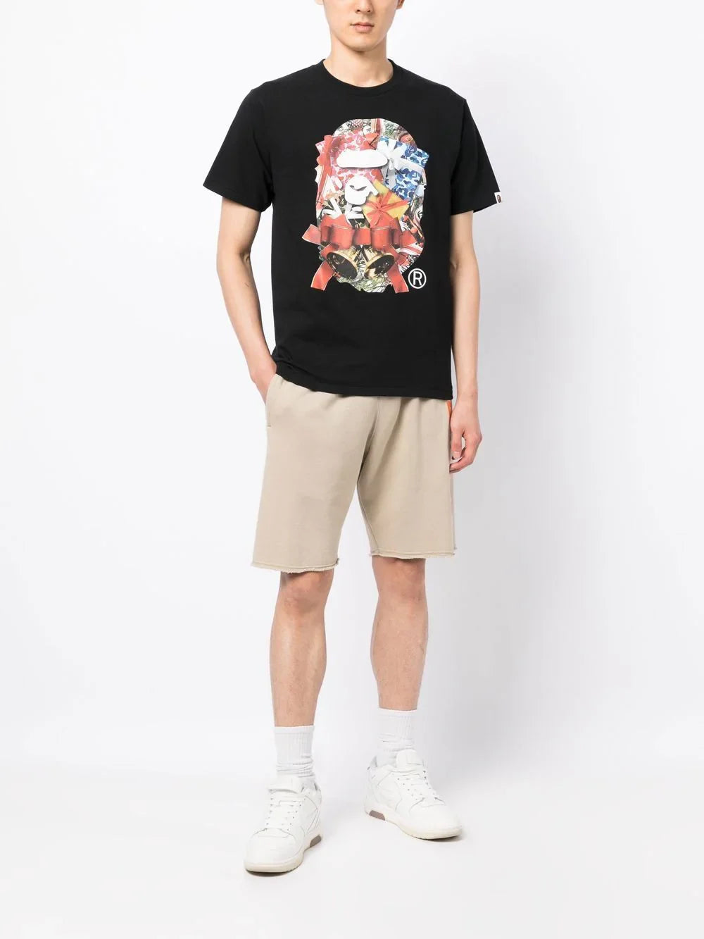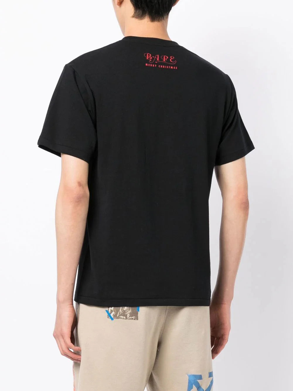 Christmas logo print T-shirt from A BATHING APE® featuring black/multicolour, cotton, logo print to the front, crew neck, short sleeves and straight hem.