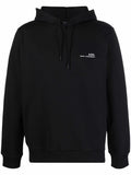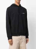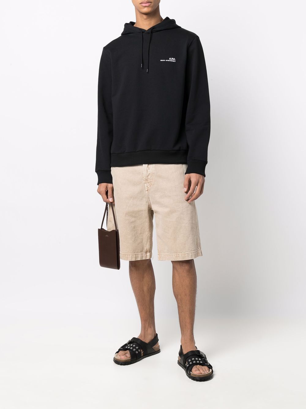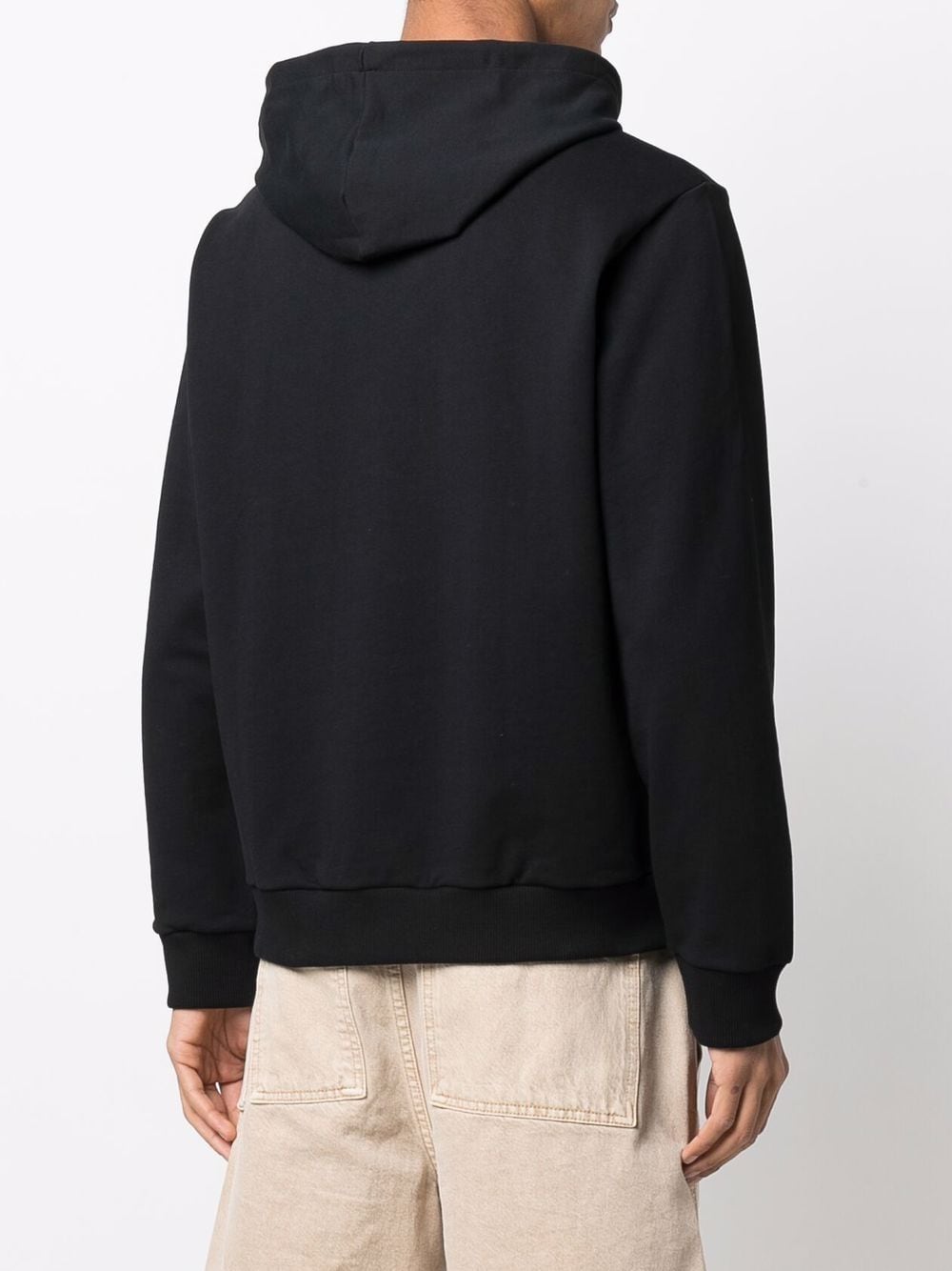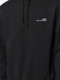 Black cotton logo print hoodie from A.P.C. featuring logo print at the chest, drawstring hood, long sleeves and straight hem.