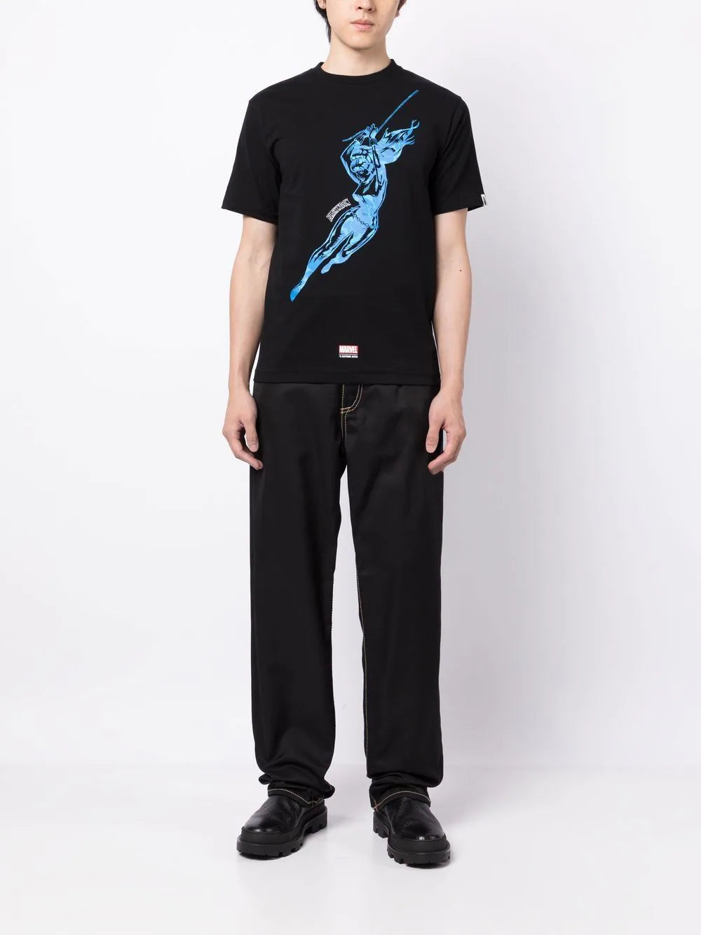 Graphic-print cotton T-shirt featuring black/blue, cotton, jersey knit, graphic print to the front, round neck, short sleeves and straight hem.