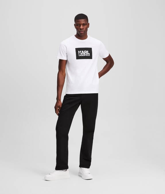 - Bold stacked KARL LAGERFELD logo at the chest