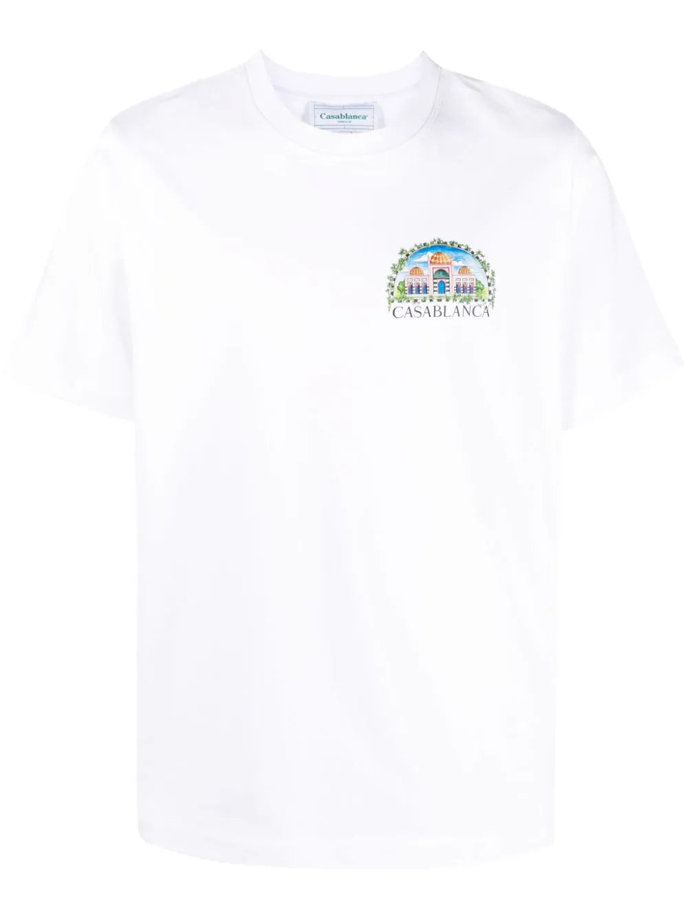 Showing the brand's focus on vibrant colours and details, this short-sleeve T-shirt from Casablanca is decorated with a coloured graphic logo at the chest and back. Crafted from organic cotton, it features a straight cut in white.