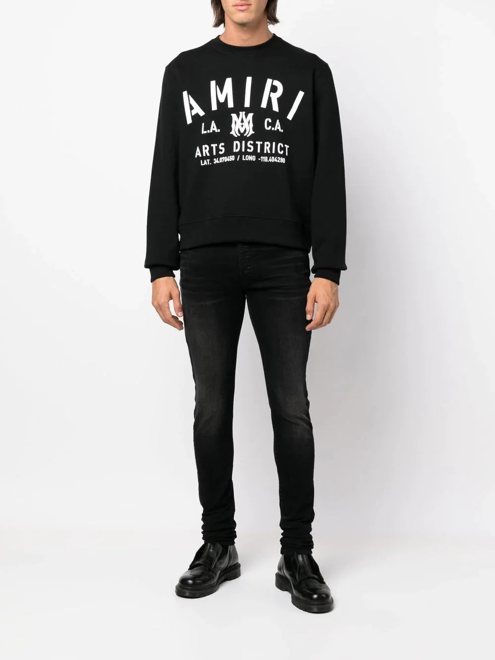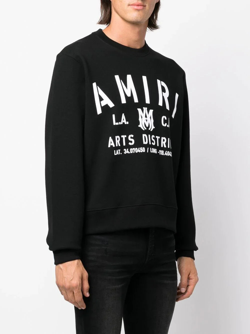logo-print detail sweatshirt featuring ribbed detailing, logo print to the front, jet black, cotton, round neck, long sleeves and straight hem.