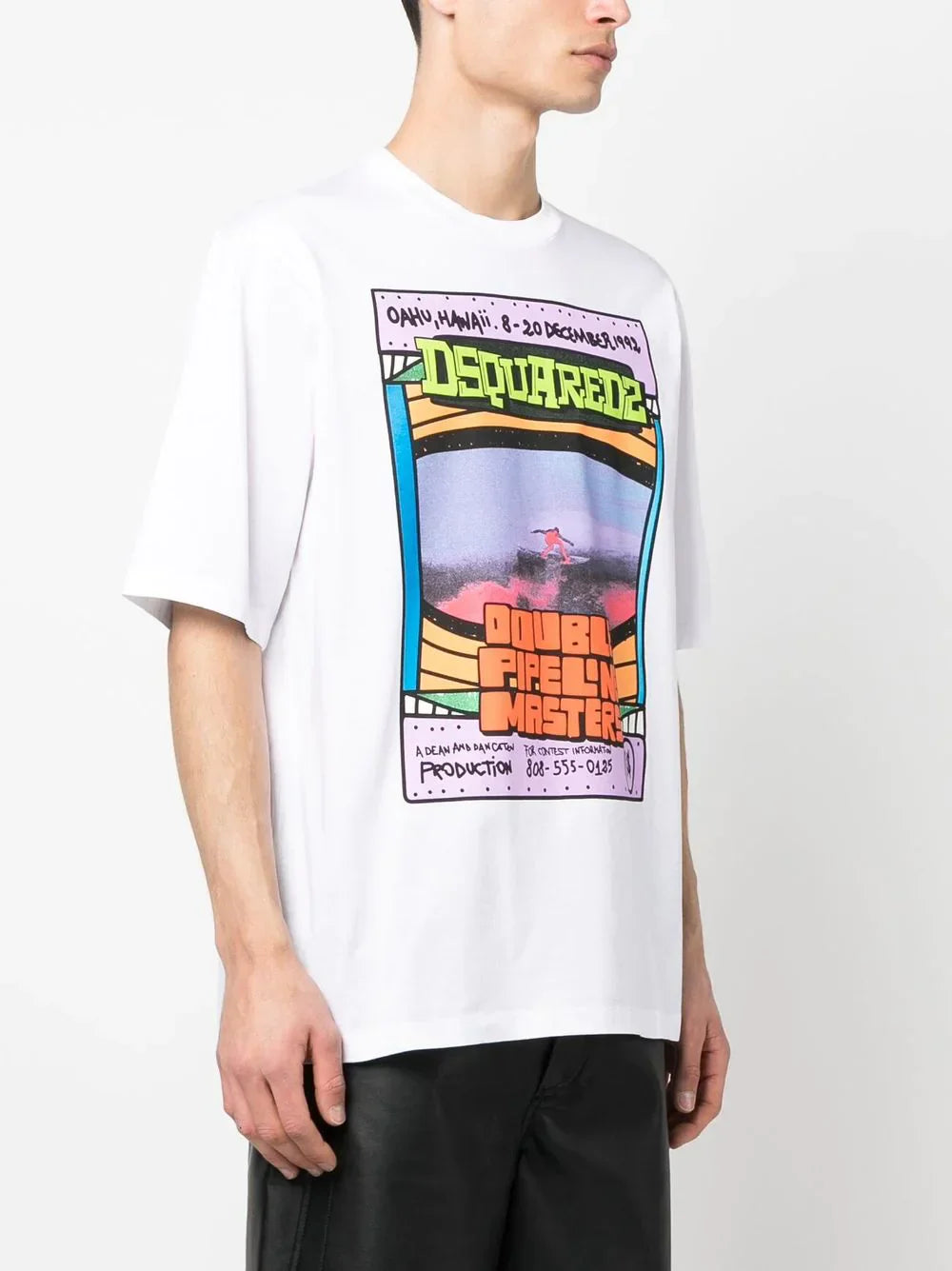 Graphic-print cotton T-shirt white, cotton, graphic print to the front, crew neck, short sleeves and straight hem, drop shoulder t-shirt