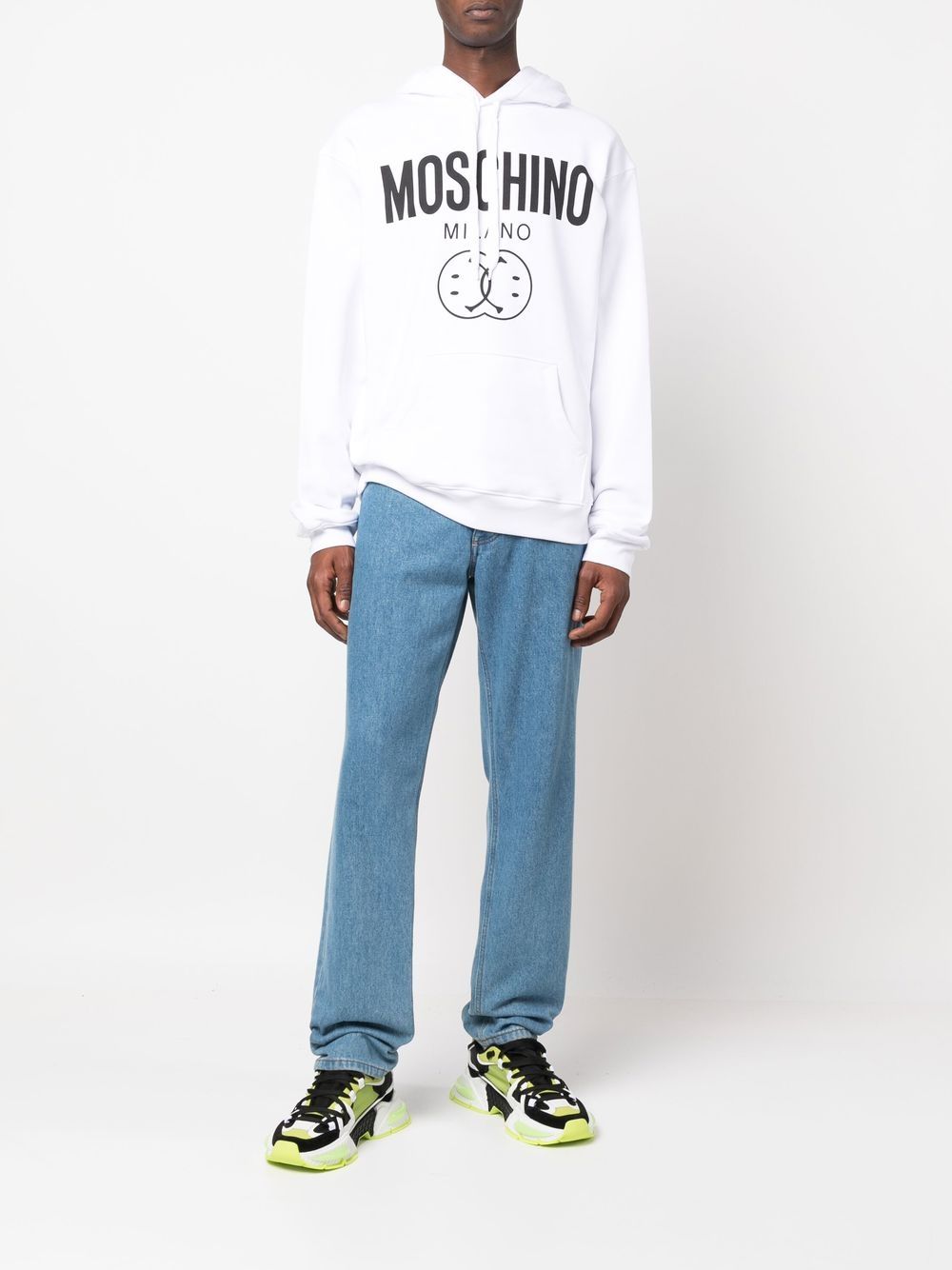 logo-print drawstring hoodie featuring optical white, cotton, logo print at the chest, drawstring hood, round neck, long sleeves and front pouch pocket.