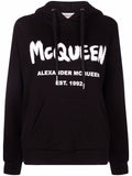 Alexander McQueen's graffiti-print logo punctuates the chest of this hoodie design. Exhibiting a more casual tone in line with contemporary street-style, the minimal decoration details the year the iconic brand was established.