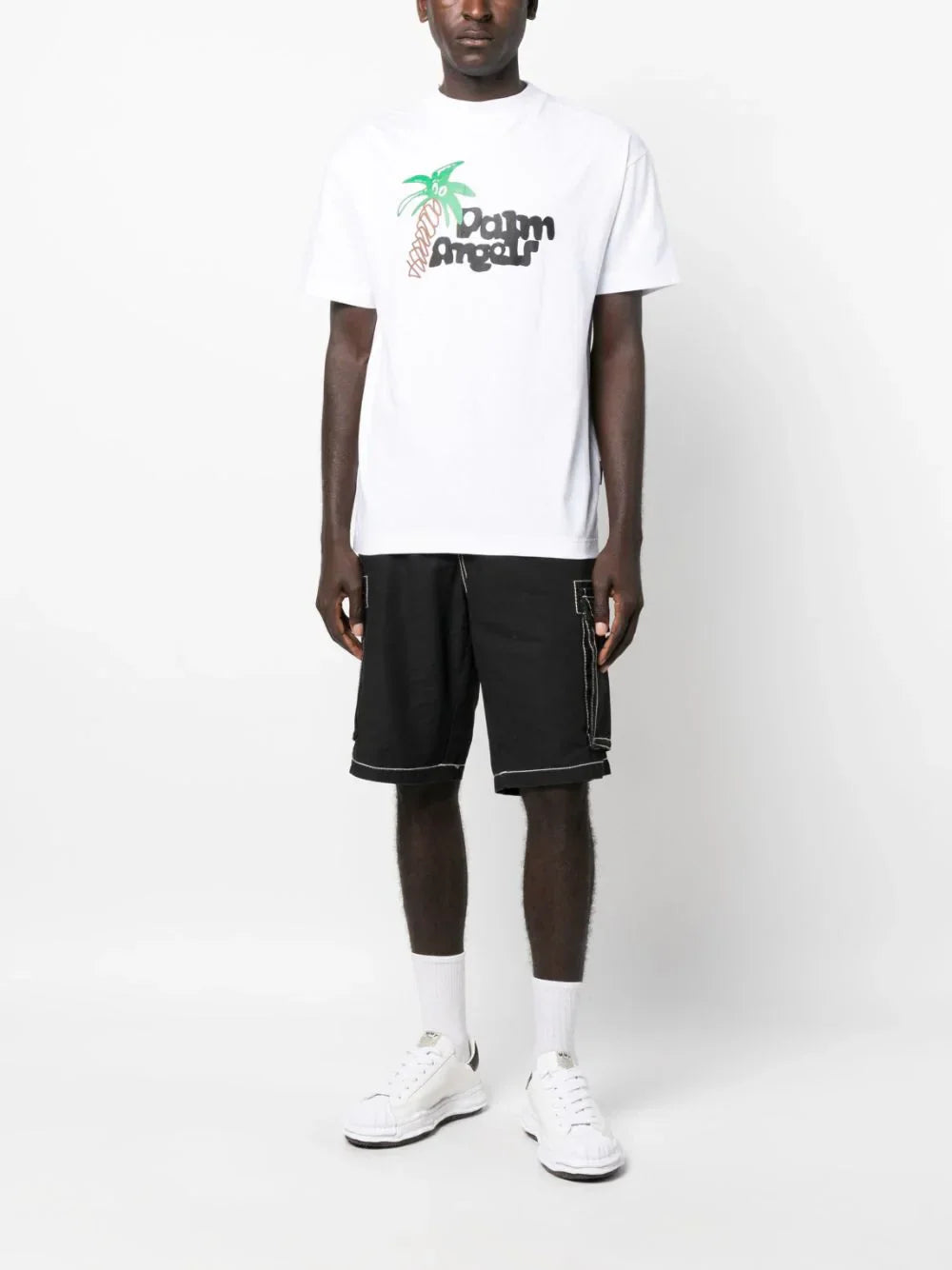 Palm Angels' signature Palm Tree logo gets a playful redesign for AW23 appearing here in a colourful sketched-on effect. The brand's lettering is also imagined in bubble letters.