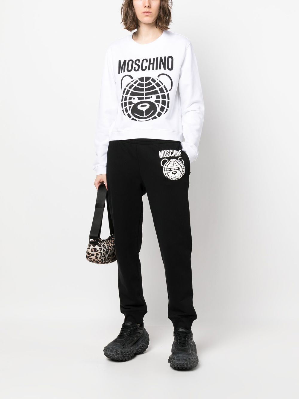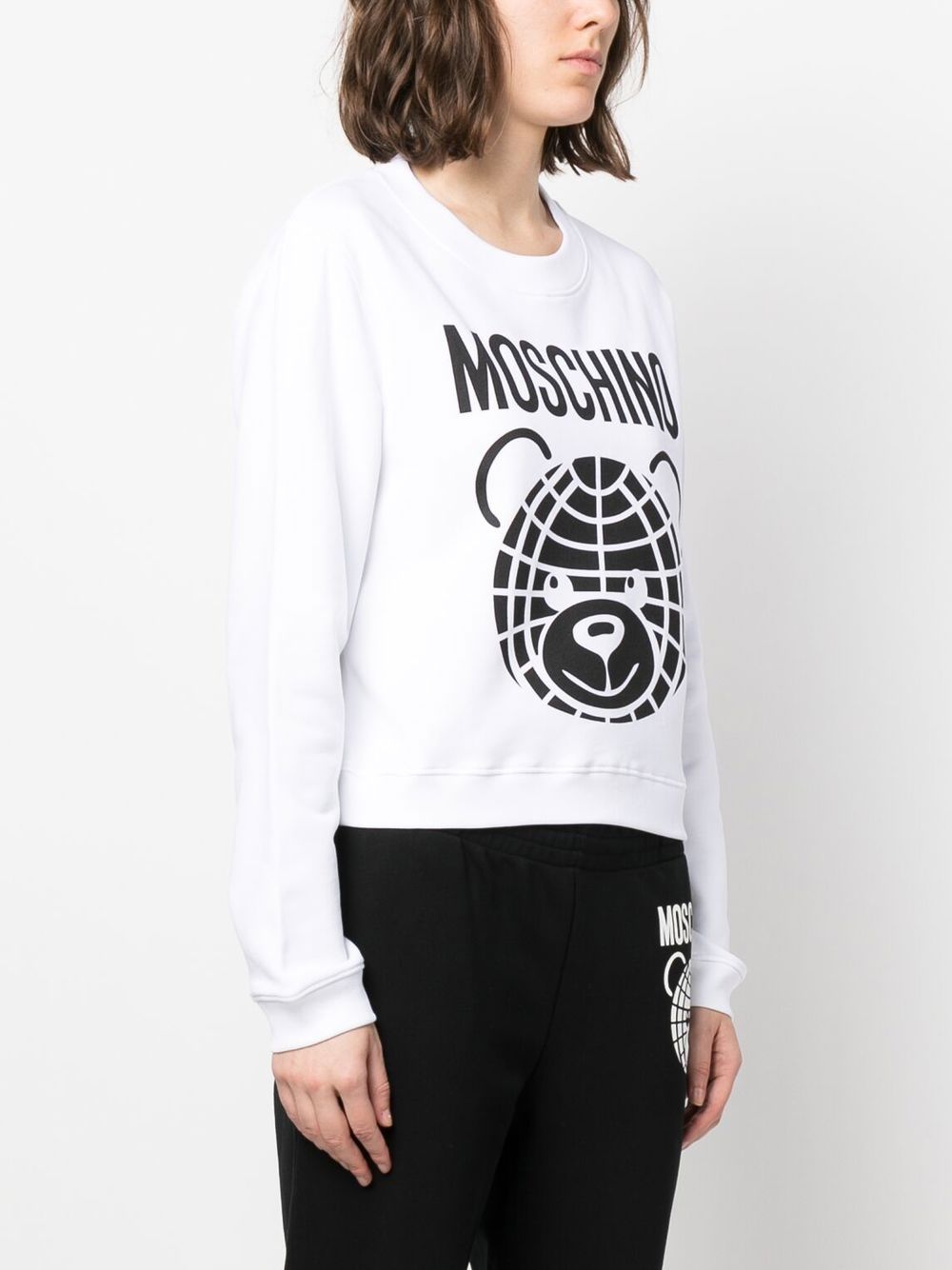 Teddy bear-print premium cotton sweatshirt featuring white/black, pure cotton, teddy bear print, logo print at the chest, crew neck, long sleeves, elasticated cuffs and elasticated hem.