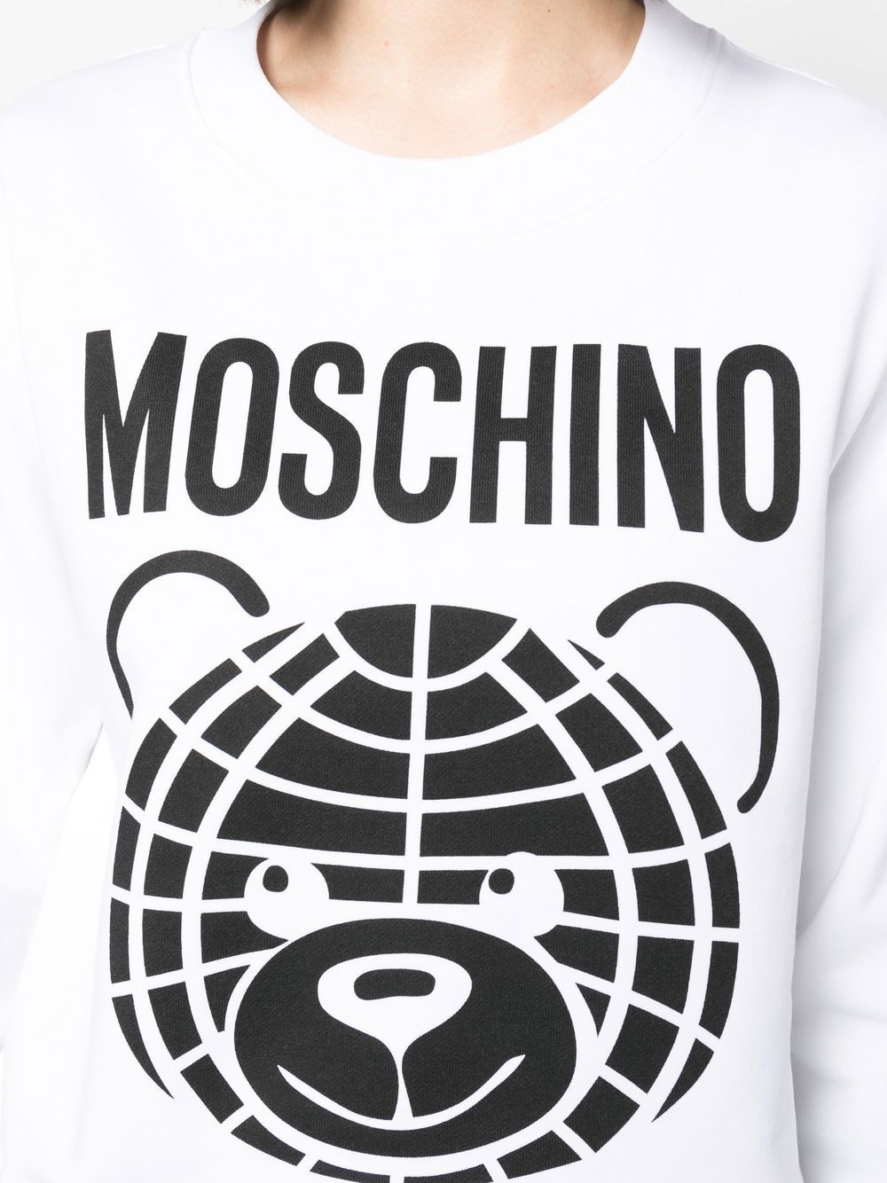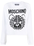Teddy bear-print white cotton sweatshirt